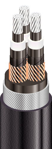 | Кабели силовые трехжильные с алюминиевыми ТПЖ, изоляцией из сшитого полиэтилена, бронированные стальной проволокой, с усиленной наружной оболочкой из полиэтилена |
