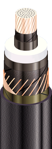 | Кабели силовые с медной ТПЖ, изоляцией из сшитого полиэтилена, продольной герметизацией экрана и наружной оболочкой из полимерной композиции, не распространяющие горение |