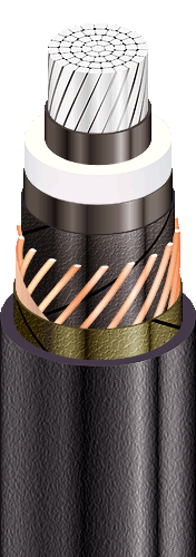 | Кабелі силові з алюмінієвими СПЖ, ізоляцією зі зшитого поліетилену, поздовжньою герметизацією екрана та посиленою зовнішньою оболонкою з поліетилену |