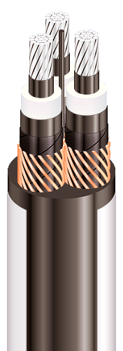 | Кабели силовые с алюминиевыми ТПЖ, изоляцией из сшитого полиэтилена, продольной и поперечной герметизацией экрана и усиленной наружной оболочкой из полиэтилена |