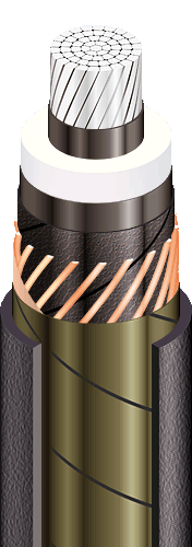 | Кабели силовые с алюминиевыми ТПЖ, изоляцией из сшитого полиэтилена, продольной герметизацией экрана и наружной оболочкой из полимерной композиции, не распространяющие горение |