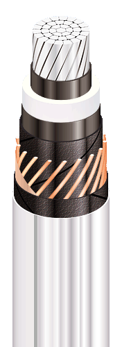 | Кабели силовые с алюминиевыми ТПЖ, изоляцией из сшитого полиэтилена, продольной и поперечной герметизацией экрана и наружной оболочкой из полимерной композиции, не распространяющие горение и не содержащие галогенов |