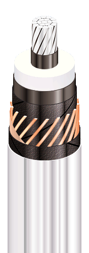 | Кабели силовые с алюминиевыми ТПЖ, изоляцией из сшитого полиэтилена, продольной и поперечной герметизацией экрана и наружной оболочкой из полимерной композиции, не распространяющие горение и не содержащие галогенов |