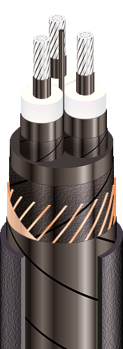 | Three-core power cables with aluminium conductors, with XLPE, collective screen, with longitudinal sealing and strengthened polyethylene outer sheath |