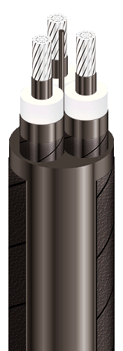 | Three-core power cables with aluminium conductors, with XLPE, collective screen, with longitudinal sealing and strengthened polyethylene outer sheath |