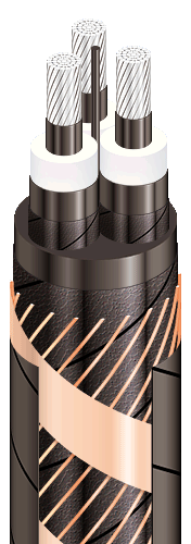 | Кабели силовые трехжильные с алюминиевыми ТПЖ, изоляцией из сшитого полиэтилена, общим экраном, с продольной герметизацией и усиленной наружной оболочкой из полиэтилена |