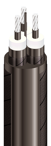| Кабелі силові трижильні з алюмінієвими СПЖ, ізоляцією зі зшитого поліетилену, загальним екраном, з поздовжньою герметизацією та посиленою зовнішньою оболонкою з поліетилену |