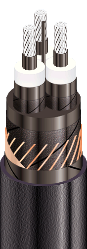 | Three-core power cables with aluminium conductors, with XLPE, collective screen, with longitudinal sealing and strengthened polyethylene outer sheath |