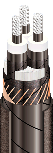 | Кабелі силові трижильні з алюмінієвими СПЖ, ізоляцією зі зшитого поліетилену, загальним екраном та зовнішньою оболонкою з ПВХ пластикату |