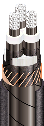 | Three-core power cables with aluminium conductors, with XLPE, collective screen and polyethylene outer sheath |