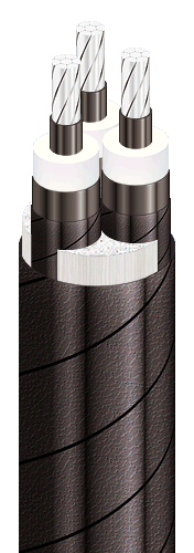 | Кабели силовые трехжильные с алюминиевыми ТПЖ, изоляцией из сшитого полиэтилена, общим экраном и усиленной наружной оболочкой из полиэтилена |