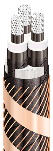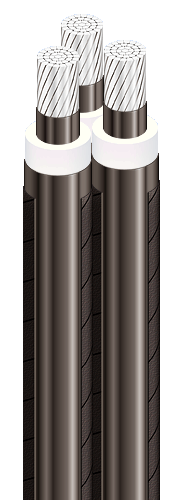 | Кабели силовые трехжильные с алюминиевыми ТПЖ, изоляцией из сшитого полиэтилена, общим экраном и усиленной наружной оболочкой из полиэтилена |