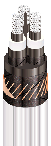 | Кабели силовые трехжильные с алюминиевыми ТПЖ, изоляцией из сшитого полиэтилена, общим экраном, с продольной и поперечной герметизацией и наружной оболочкой из полимерной композиции, не распространяющие горение |