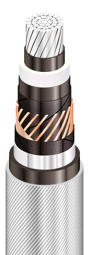| Кабели силовые одножильные с алюминиевой ТПЖ, изоляцией из сшитого полиэтилена, бронированные алюминиевой проволокой, продольной и поперечной герметизацией экрана, с наружной оболочкой из полимерной композиции, не распространяющие горение и не содержащие галогенов |