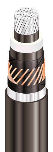 | Кабели силовые одножильные с алюминиевой ТПЖ, изоляцией из сшитого полиэтилена, бронированные алюминиевой проволокой, продольной и поперечной герметизацией экрана, с наружной оболочкой из полимерной композиции, не распространяющие горение и не содержащие галогенов |