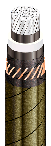 | Кабели силовые одножильные с алюминиевыми ТПЖ, изоляцией из сшитого полиэтилена, медным экраном, свинцовой оболочкой и усиленной наружной оболочкой из полиэтилена |