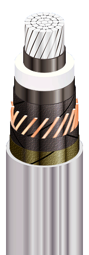 | Single-core power cables with aluminium conductors, XLPE-insulated, with copper screen, lead-sheathed, with reinforced outer sheath of polyethylene |