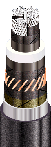 | Кабели силовые одножильные с алюминиевыми ТПЖ, изоляцией из сшитого полиэтилена, медным экраном, свинцовой оболочкой и усиленной наружной оболочкой из полиэтилена |