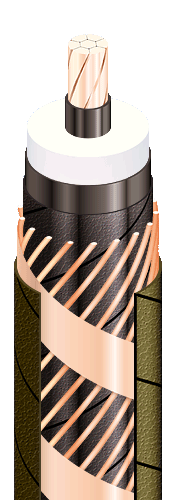 | Кабели силовые с медными ТПЖ, изоляцией из сшитого полиэтилена, продольной герметизацией экрана и усиленной наружной оболочкой из полиэтилена |