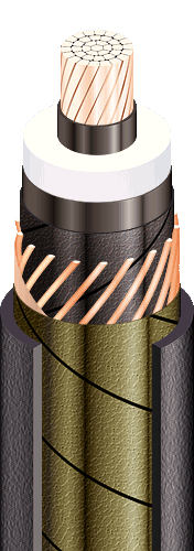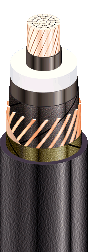 | Кабели силовые с медными ТПЖ, изоляцией из сшитого полиэтилена, продольной герметизацией экрана и усиленной наружной оболочкой из полиэтилена |