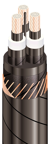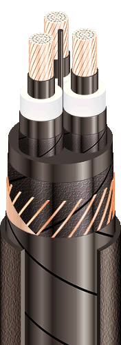 | Three-core power cables with copper conductors, with XLPE, collective screen, with longitudinal sealing and PVC compound outer sheath |