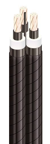 | Кабелі силові трижильні з мідними СПЖ, ізоляцією зі зшитого поліетилену, загальним екраном, з поздовжньою герметизацією та зовнішньою оболонкою з ПВХ пластикату, що не розповсюджують горіння та з низьким димо- та газовиділенням |