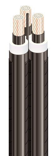 | Кабели силовые трехжильные с медными ТПЖ, изоляцией из сшитого полиэтилена, общим экраном, с продольной герметизацией и наружной оболочкой из ПВХ пластиката, не распространяющие горение и с низким дымо- и газовыделением |