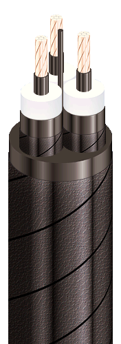 | Кабели силовые трехжильные с медными ТПЖ, изоляцией из сшитого полиэтилена, общим экраном, с продольной герметизацией и наружной оболочкой из ПВХ пластиката, не распространяющие горение и с низким дымо- и газовыделением |
