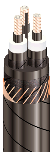 | Кабели силовые трехжильные с медными ТПЖ, изоляцией из сшитого полиэтилена, общим экраном, с продольной герметизацией и усиленной наружной оболочкой из полиэтилена |