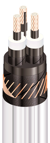 | Кабели силовые трехжильные с медными ТПЖ, изоляцией из сшитого полиэтилена, общим экраном, с продольной и поперечной герметизацией и наружной оболочкой из полиэтилена |