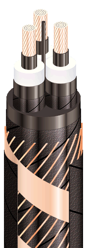 | Кабели силовые трехжильные с медными ТПЖ, изоляцией из сшитого полиэтилена, общим экраном, с продольной и поперечной герметизацией и наружной оболочкой из полиэтилена |