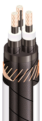 | Кабели силовые трехжильные с медными ТПЖ, изоляцией из сшитого полиэтилена, общим экраном, с продольной и поперечной герметизацией и усиленной наружной оболочкой из полиэтилена |