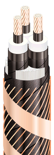 | Кабелі силові трижильні з мідними СПЖ, ізоляцією із зшитого поліетилену, загальним екраном та зовнішньою оболонкою з ПВХ пластикату, що не розповсюджують горіння |
