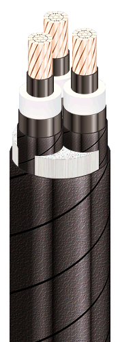 | Кабели силовые трехжильные с медными ТПЖ, изоляцией из сшитого полиэтилена, общим экраном и усиленной наружной оболочкой из полиэтилена |