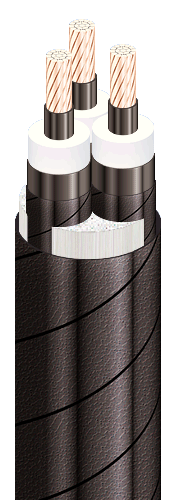 | Кабели силовые трехжильные с медными ТПЖ, изоляцией из сшитого полиэтилена, общим экраном и наружной оболочкой из полимерной композиции, не распространяющие горение |