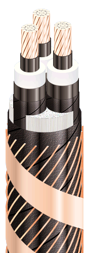 | Three-core power cables with copper conductors, flame-retardant and halogen-free, with XLPE, collective screen and polymer compound outer sheath |