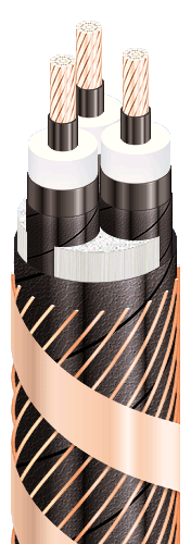 | Кабелі силові трижильні з мідними СПЖ, ізоляцією зі зшитого поліетилену, загальним екраном та зовнішньою оболонкою з полімерної композиції, що не розповсюджують горіння і не містять галогенів |