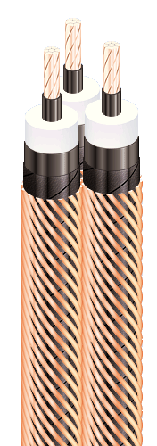 | Three-core power cables with copper conductors, flame-retardant, with XLPE, steel-tape armoured, with PVC compound outer sheath and with low smoke and gas emission |