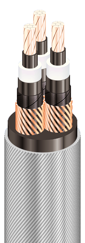 | Кабели силовые трехжильные с медными ТПЖ, изоляцией из сшитого полиэтилена, бронированные стальной проволокой, с наружной оболочкой из ПВХ пластиката |