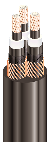 | Кабели силовые трехжильные с медными ТПЖ, изоляцией из сшитого полиэтилена, бронированные стальными лентами, с наружной оболочкой из полимерной композиции, не распространяющие горение |