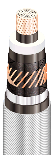| Кабели силовые одножильные с медной ТПЖ, изоляцией из сшитого полиэтилена, бронированные алюминиевой проволокой, продольной и поперечной герметизацией экрана, с наружной оболочкой из полимерной композиции, не распространяющие горение |