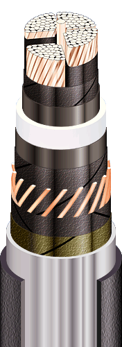| Кабели силовые одножильные с медными ТПЖ, изоляцией из сшитого полиэтилена, медным экраном, свинцовой оболочкой и усиленной наружной оболочкой из полиэтилена |