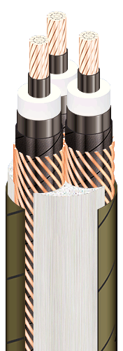 | Three core power cables with copper conductors, XLPE-insulated, core-filled with bundles, with outer sheath of PVC compound, flame retardant, with low smoke and gas emission |
