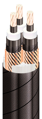 | Кабели силовые трехжильные с медными ТПЖ, изоляцией из сшитого полиэтилена, с заполнением сердечника корделями, c усиленной наружной оболочкой из полиэтилена |