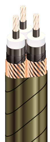 | Кабели силовые трехжильные с медными ТПЖ, изоляцией из сшитого полиэтилена, без заполнения сердечника, c наружной оболочкой из ПВХ пластиката, не распространяющие горение и с низким дымо- и газовыделением |
