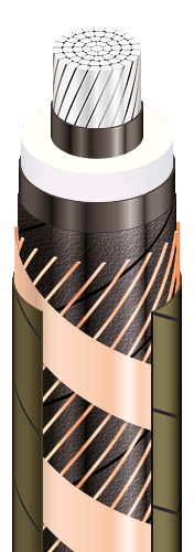 | Кабелі силові з алюмінієвою СПЖ, ізоляцією зі зшитого поліетилену, поздовжньою герметизацією екрану та зовнішньою оболонкою з полімерної композиції, що не розповсюджують горіння і не містять галогенів |