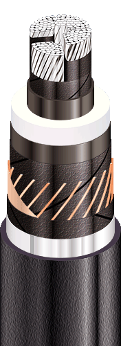 | Кабелі силові з алюмінієвою СПЖ, ізоляцією зі зшитого поліетилену, поздовжньою та поперечною герметизацією екрану та зовнішньою оболонкою з полімерної композиції, що не розповсюджують горіння |