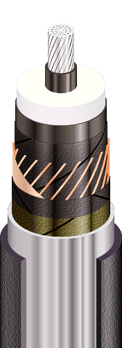| Power cables with aluminium conductor, XLPE-insulated, with copper screen, lead-sheathed, with reinforced outer sheath of polyethylene |