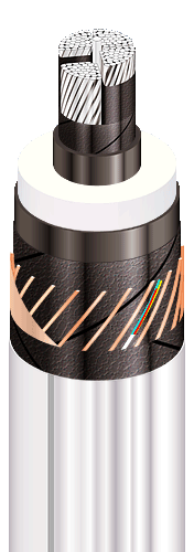 | Кабелі силові з алюмінієвою СПЖ, ізоляцією зі зшитого поліетилену, поздовжньою та поперечною герметизацією екрану та зовнішньою оболонкою з полімерної композиції, що не розповсюджують горіння |