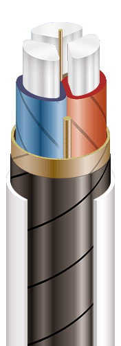 | Кабели силовые с алюминиевыми токопроводящими жилами, с бумажной пропитанной изоляцией, в алюминиевой оболочке, с защитным шлангом из ПВХ пластиката |